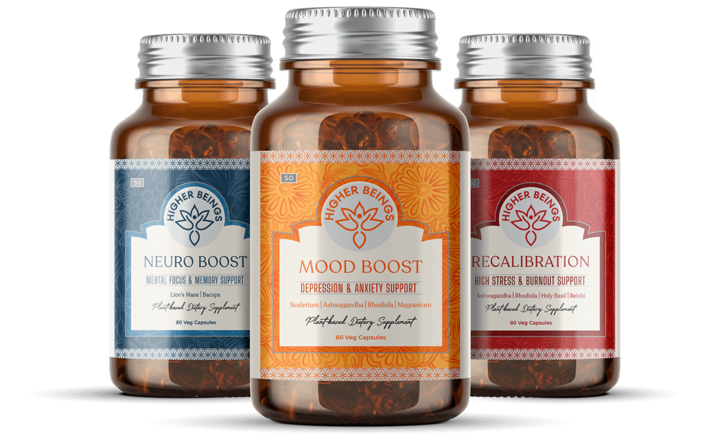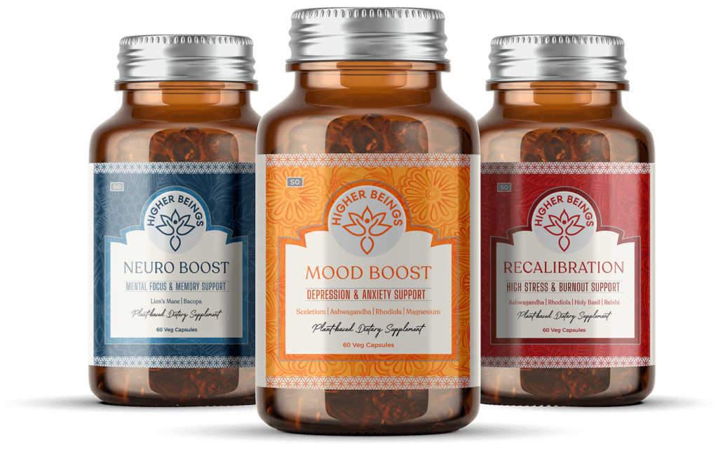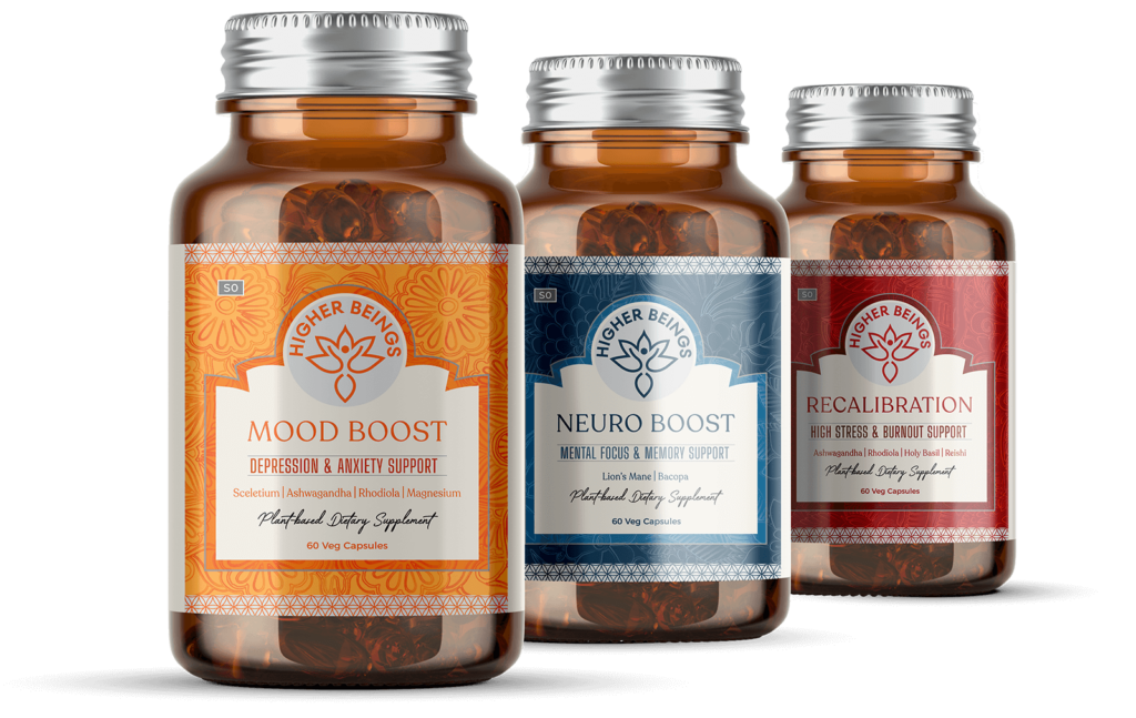 Higher Beings stands as a beacon of hope and innovation. We have developed a unique range of supplements designed to address the physical and mental effects of stress, anxiety, depression, and other mental health issues.